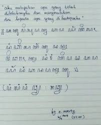 Aksara jawa adalah aksara turunan dari aksara Brahmi. Daerah yang menggunakan aksara ini adalah wilayah Pulau JawaSunda Melayu Makasar dan Sasak serta dipakai untuk penulisan jenis karya sastra yang menggunakan bahasa Jawa. E menghasilkan taling x menghasilkan pepet.