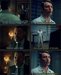 The Great Red Dragon1 is the eighth episode of Season 3. He refers to his other self as The Great Red Dragon after William Blakes painting The Great Red Dragon and the Woman Clothed in Sun. In the movie Red Dragon Will Graham pays a visit to Hannibal and discusses his new discovery.