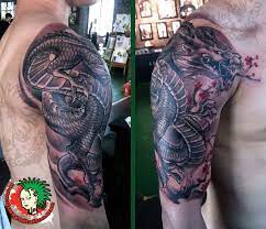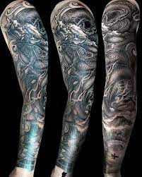 Dragon tattoo designs are very powerful symbols especially within Asian culture. Carry a symbol of good fortune on your shoulder with a Japanese dragon sleeve tattoo. The water-based Asian dragons live in lakes rivers and oceans.