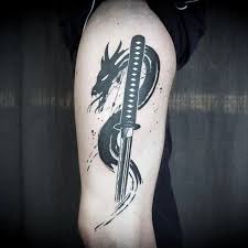 Aug 31 2017 - Explore Tattoomazes board Samurai Sword Tattoo Designs followed by 9837 people on Pinterest. Including a Japanese or samurai sword known as katana represents self-discipline courage honor respect and loyalty. People often think of full figure designs when considering dragon tattoos however a dragon head by itself can be an excellent stylistic and economic choice.