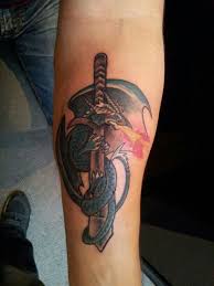 Dragon sword tattoo meaning. The swords are broad and. A dragon can represent a bad part of yourself that you the hero of your own story have finally overcome. In this blog post we are going to discuss 10 Viking tattoos which were the most favorite and common to the ancient Vikings.