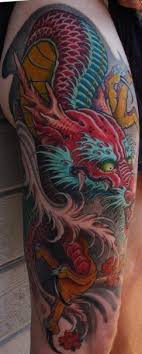 Try a green or yellow or even pink dragon tattoo on leg. This powerful combo of the tiger and dragon tattoo says more than just strength and dominance as it is the one of the most power demonstrating designs that can be inked out of the various designs of the tiger tattoo gallery. 3D Fire Dragon Tattoo On Man Right Shoulder.