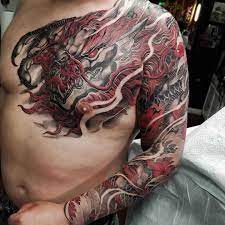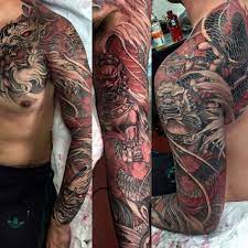 You can have any size of creature tattoos. However women are fans of dragon tattoos as well although theirs tend to be smaller and more elaborate. The red and black dragon idea successfully maintains the tradition of Japanese sleeve tattoos by highlighting the specific movements with certain shapes and waves effect.