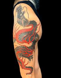 Dragon tattoos are popular with men and are usually considered to be a masculine design. Arm Traditional Dragon Tattoos 4. The artist beautifully played with red gray black and yellow to create an authentic oriental look.