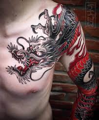 Modern dragon tattoo designs. Japanese dragon tattoos are quite popular. We have collected and brought to you some of the finest dragon tattoos you may ever encounter in your life. Some tattoos have an almost human-like face with the body of the fish while others give the fish dragon-like features.