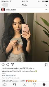 Nikita Dragun shows off her dragon head sternum tattoo. Nikita Dragun a makeup artist and model whose appearance is enough to describe her profession. At nikitadragun on jan 10 2017 at 718pm pst.
