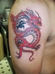 Red dragon tattoo on arm. These tattoos have even won the heart of female celebrities like Angelina Jolie. Black And Red Tattoo On Right Forearm. You can consider a dragon tattoo on the arm as a display of strength.