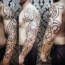 Whether the tattoos are a depiction of the Vikings themselves bloodthirsty berserkers from a Viking ship wearing a horned helmet or tattoo symbol of these great warrior mythology an arm tattoo is an ideal location for storytelling. At our studioyou can get all kind of tattoos and piercings like Realistic Black and grey tattooJapanese tattooTraditional FloralChinese tattooFine line art tattoo Old school tattooMaori tattoo Religious tattoo Pin-up tattoo Celtic tattoo New school tattooOriental tattoo Biomechanical. See more ideas about dragon tattoo viking dragon celtic art.