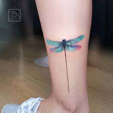 With an expert tattoo stylist you can blend the design with a mixture of bold colors and elements. Watercolor dragonfly tattoo on ankle by Simona Blanar.