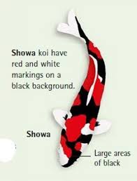 Main colors of the fish are black and white with some yellow or red areas. They were introduced to Japan by Chinese invaders. Today the fish are considered to be symbolic of advancement materially and spiritually.
